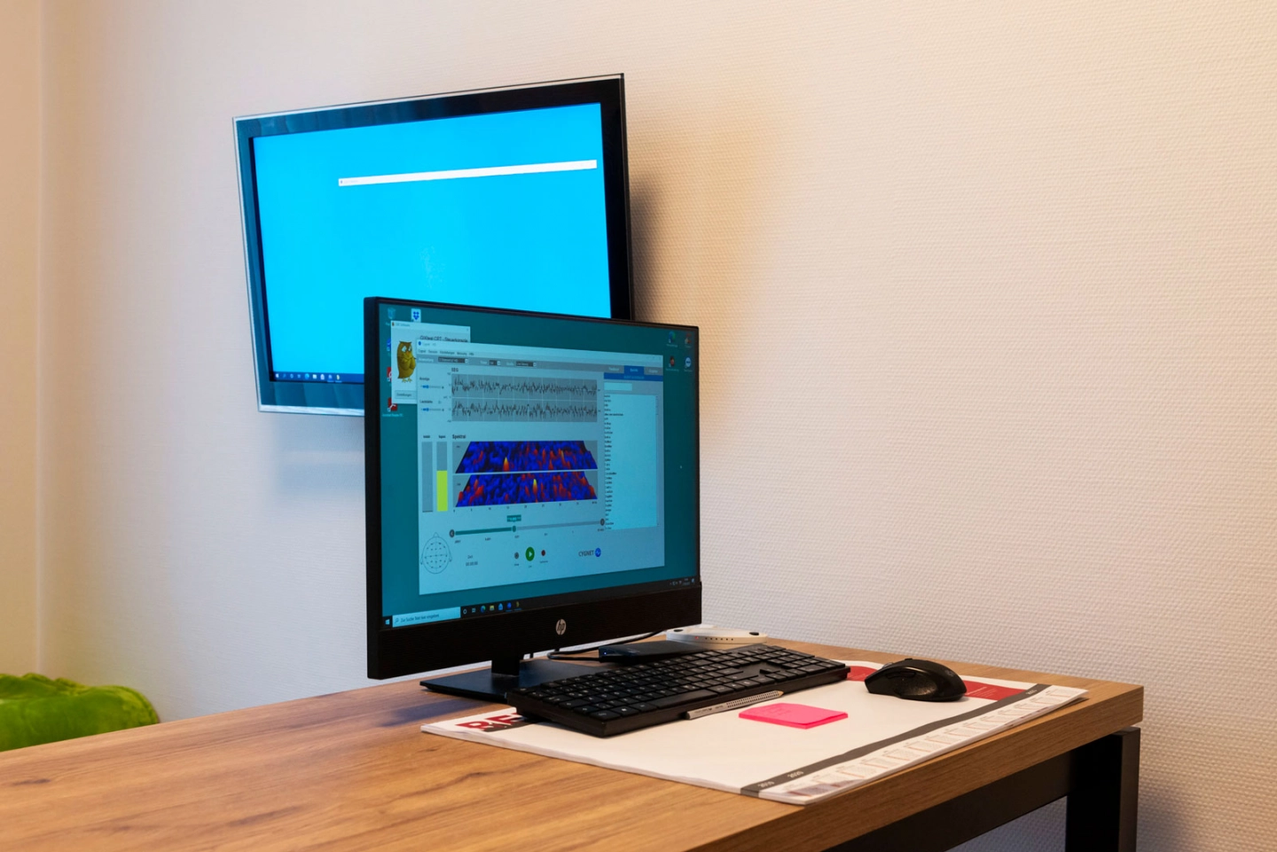 Computergestützte Traniningsmethode, die durch ein Teil-EEG gewonnene Informationen die momentane Gehirnaktivität auf einen Bildschirm überträgt.